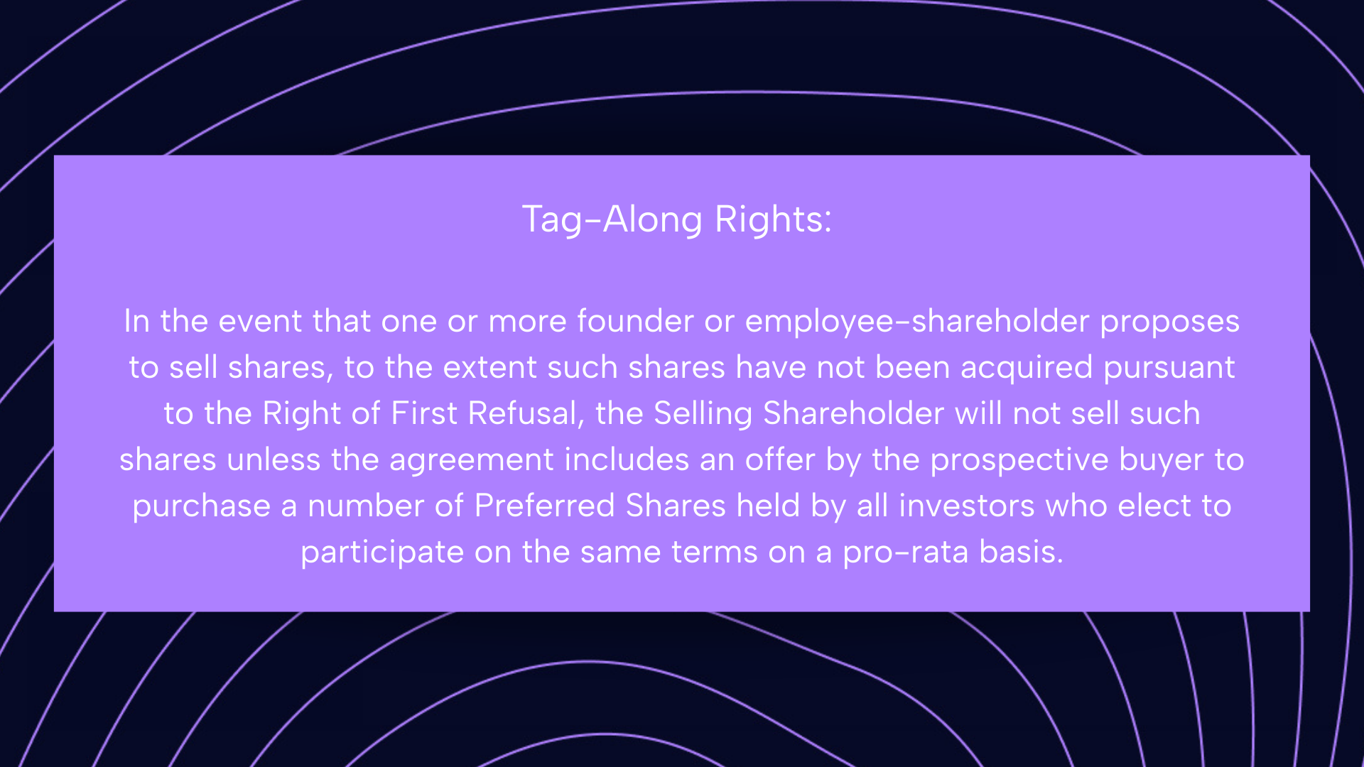 Traduction : Si tu (fondateur) vends tes actions à quelqu'un, les investisseurs ont le droit de "suivre" et de vendre une partie de leurs actions aussi, aux mêmes conditions.