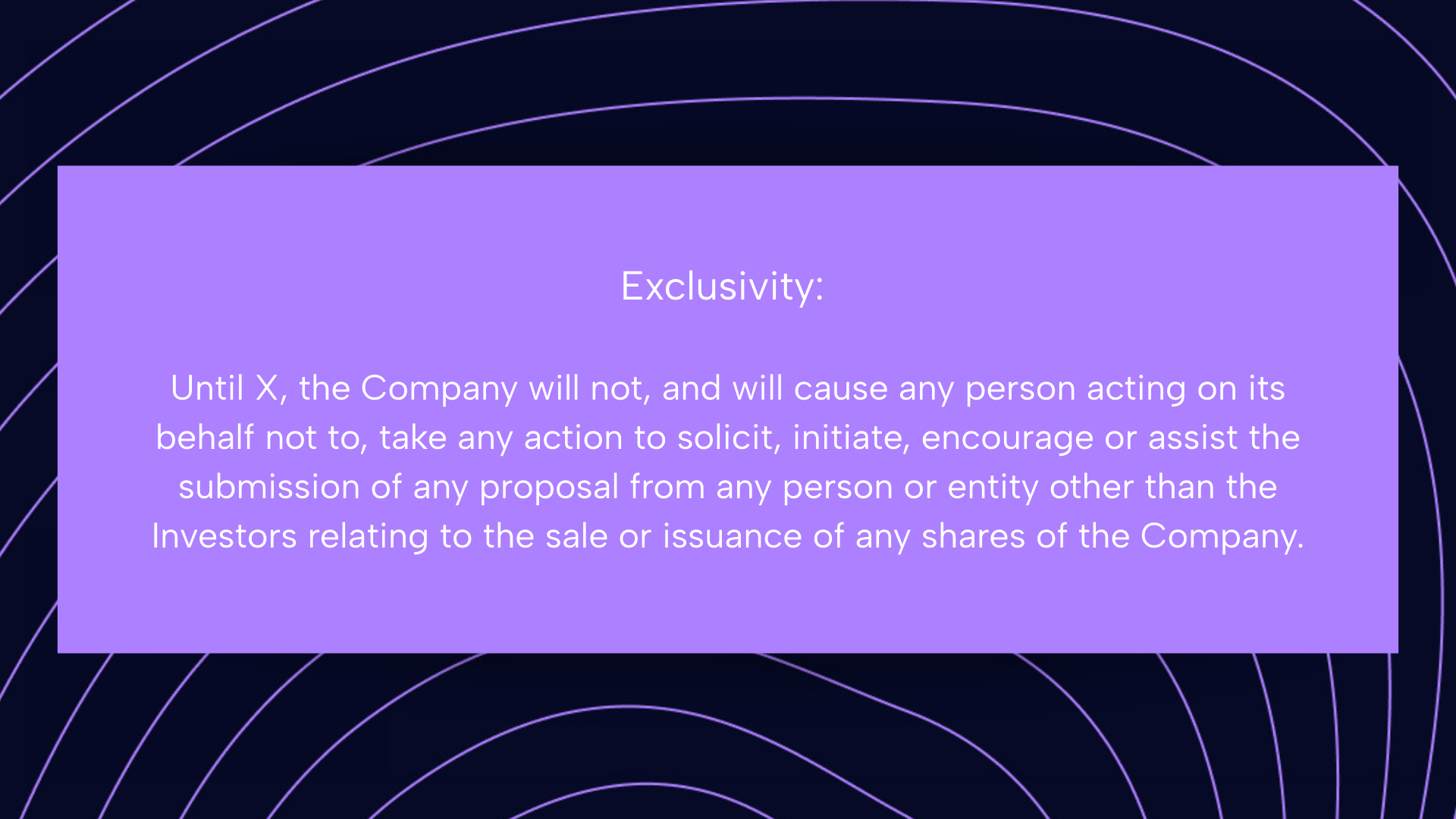 L'investisseur va dépenser du temps et de l'argent en due diligence. Il veut pas que tu utilises son term sheet pour aller faire du magasinage et obtenir une meilleure offre ailleurs.